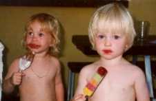 Carina mal mit Freundin beim 'Schminken', mal mit Bruder beim Brotbacken, mal beim Fliegen .... und auch mal friedlich im Bett.